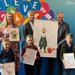 Vier kreative Köpfe – Ben, Emma, Max und Simon – hatten unabhängig voneinander dieselbe Idee für das Maskottchen der Landesgartenschau Kleve 2029. Damit teilen sie sich nun auch den ersten Platz im Ideenwettbewerb. Die frohe Botschaft wurde den Schüler:innen verschiedener Schulen direkt in den Klassen überbracht.
